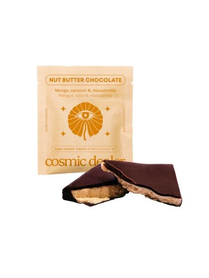 Chocolats Chakra de chez Cosmic Dealer sont faibles en sucre, keto-friendly et ont un effet minimal sur la glycémie.