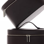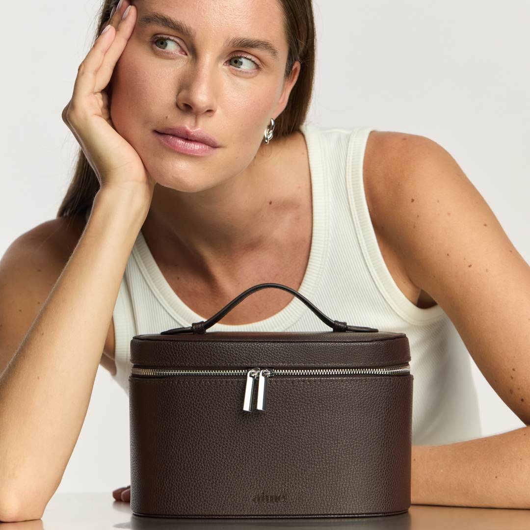 Le Vanity AIME s’inspire des essentiels du dressing pour se réinventer en version salle de bains. En cuir vegan grainé, avec sa teinte brun profond, il associe élégance et fonctionnalité dans un format pensé pour la salle de bains comme pour les voyages. Son intérieur, doublé d’un suède doux et d’une poche en mesh, en font un bel objet du quotidien, à la fois intemporel et fonctionnel.