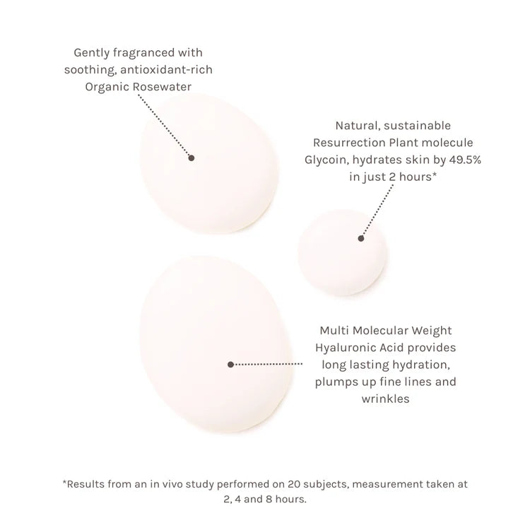 Formulée avec le Glycoin, molécule végétale de résurrection, qui ravive et rétablit instantanément l'hydratation de la peau. Cet ingrédient anti-âge soutient également la vitalité cellulaire, contribuant à améliorer l'élasticité et la luminosité de la peau, et à apaiser et calmer tout signe d'irritation.