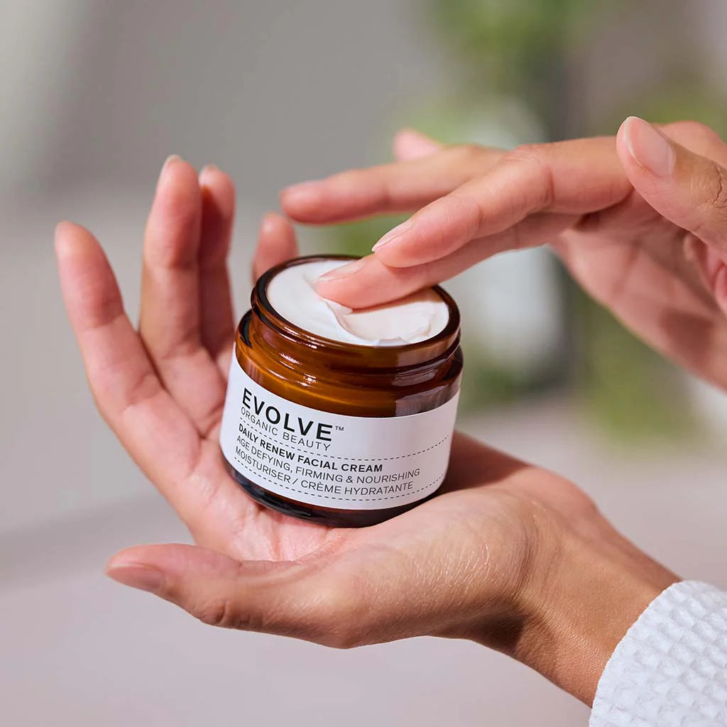 Creme nourrissante visage est riche en huile d'argan et en acide hyaluronique, une formule très nourrissante idéale pour les peaux normales à sèches car la creme de jour Evolve Beauty apporte une hydratation complète au visage.