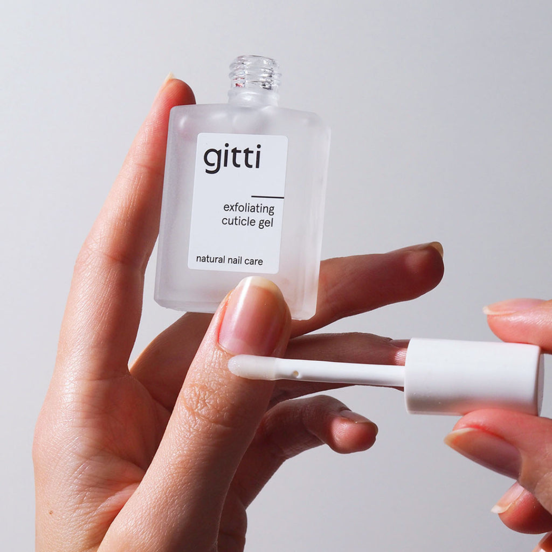 Exfoliating Cuticle Gel lisse les ongles et adoucit les cuticule pour une apparence plus saine et plus éclatante. Enrichi avec des AHA dérivés de fruits, de la glycérine et du jus d'aloe vera, il est sans parfum et sans gluten.