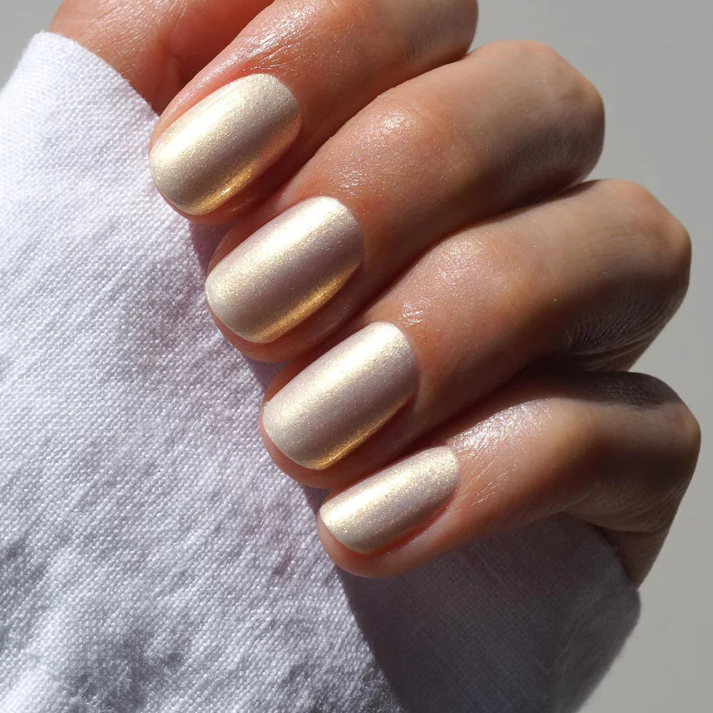 Un blanc aux reflets irisés bleu doré, parfait en toute occasion !