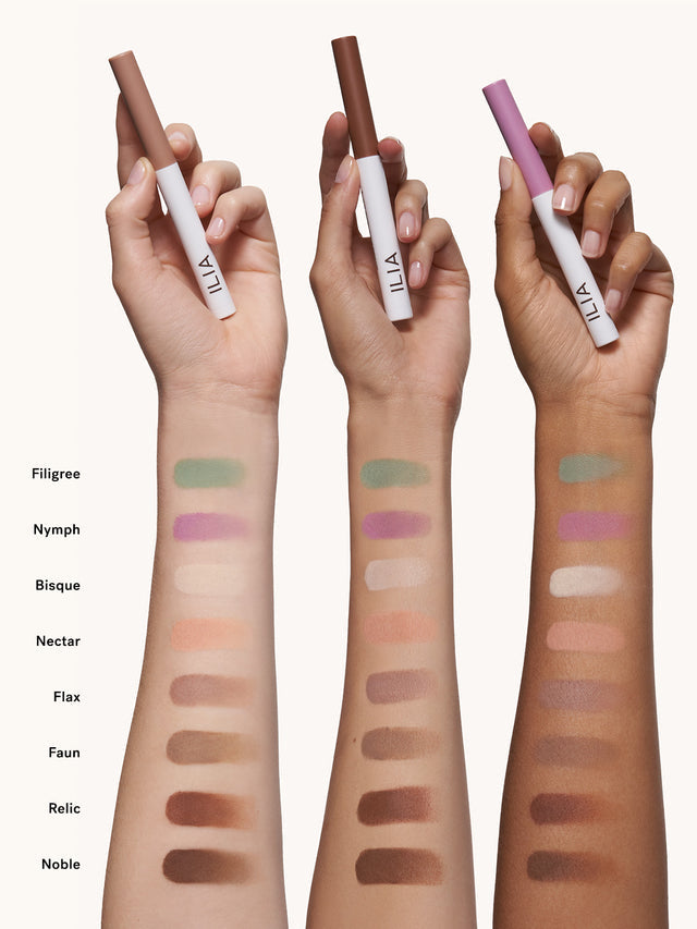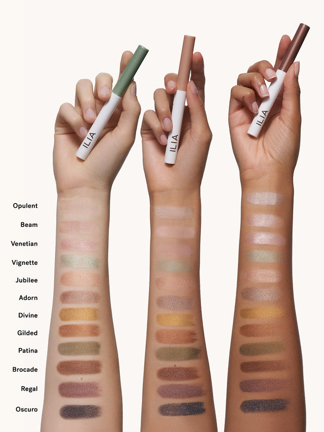 INCI: Trisiloxane, Trimethylsiloxysilicate, Calcium Sodium Borosilicate, Dimethicone, Synthetic Wax, Phenylpropyldimethylsiloxysilicate, C20-24 Alkyl Dimethicone, Silica, Dicalcium Phosphate, Mica, Caprylyl Methicone, Copernicia Cerifera (Carnauba) Wax, Lauroyl Lysine, Caprylic/Capric Triglyceride, Stearalkonium Hectorite, Polyhydroxystearic Acid, Propylene Carbonate, Isostearic Acid, Pentaerythrityl Tetra-Di-T-Butyl Hydroxyhydrocinnamate, Lecithin, Polyglyceryl-3 Polyricinoleate, Vitis Vinifera (Grape) Fruit Extract.