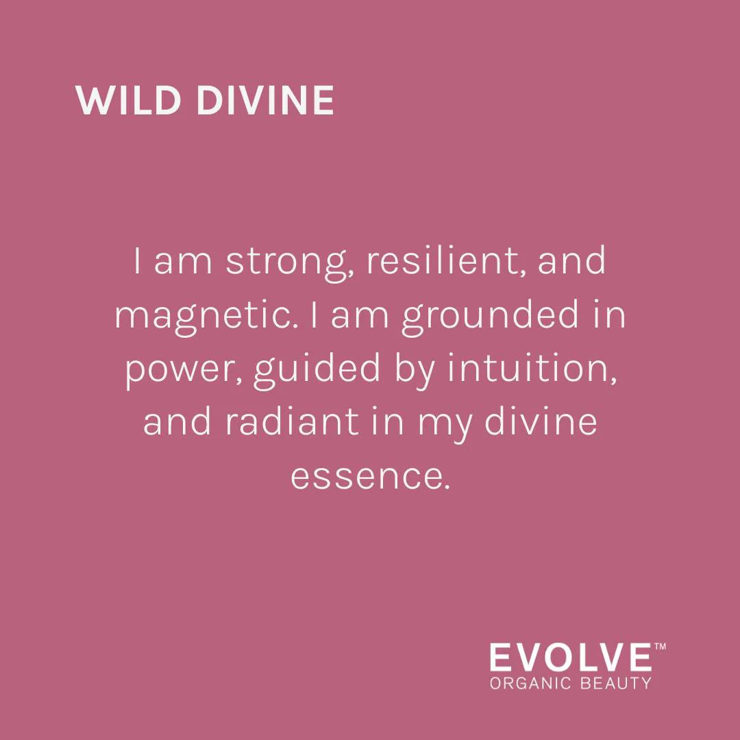 Wild Divine possède des notes de rose Otto et de géranium rosat : apaisent le cœur et amour-propre, de palmarosa et d'orange douce : éclat lumineux qui insuffle clarté, optimisme et légèreté émotionnelle et de cacao subtil : chaleur réconfortante et profondeur apaisante pour un bien-être enveloppant.