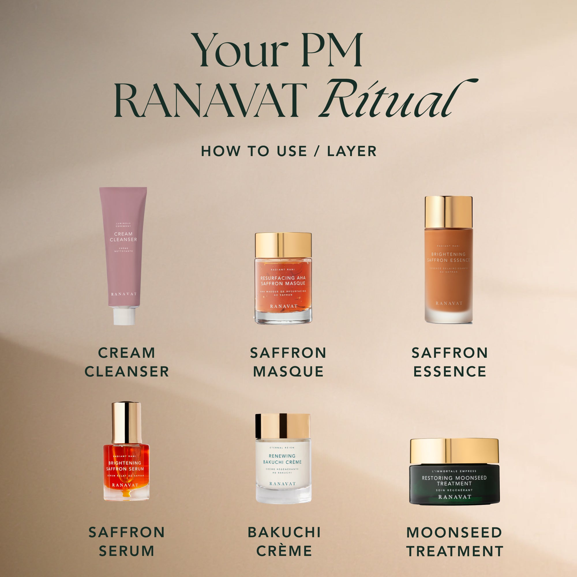 Can be used 2-3 times a week when your skin needs a deeper level of repair. The nighttime treatment is most effective when used after the Jasmine Hydrating Mist and Brightening Saffron Serum.
