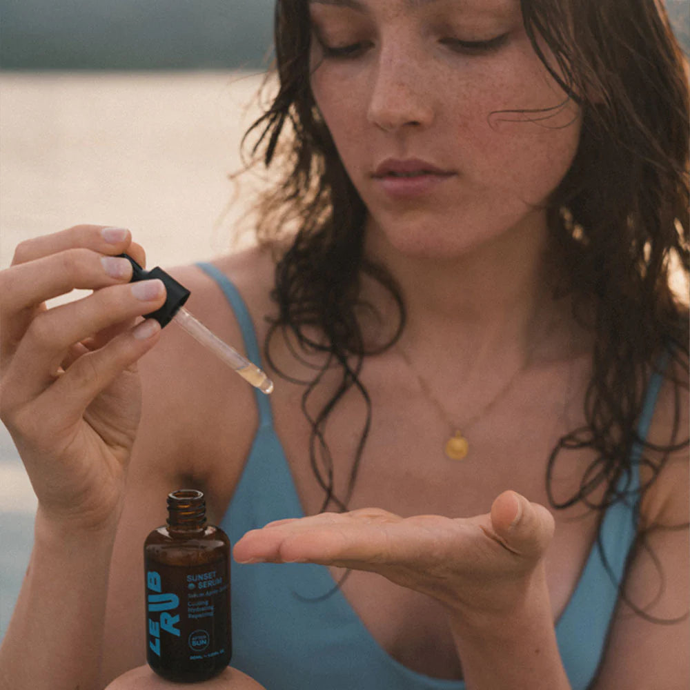 Apply a few drops evenly to your face, on clean skin, before applying a day or night cream. No sunscreen can completely prevent sun damage, so we recommend using Sunset Serum after every day outdoors, even if you don't feel sunburned.