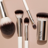 ILIA Beauty's makeup brushes are cruelty free and easy to clean. Use mild soap and warm water, then leave laying flat to air dry.