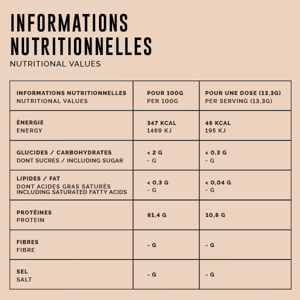 Mélangez 1 dose de collagène par jour dans 20cl d’eau chaude ou de lait. Vous pouvez également l'ajouter dans toutes vos recettes.