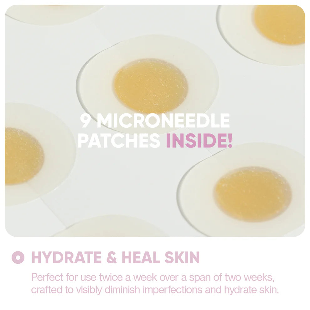 9 micro-needle patchs infusés d'huile d'arbre à thé et d'acide hyaluronique.