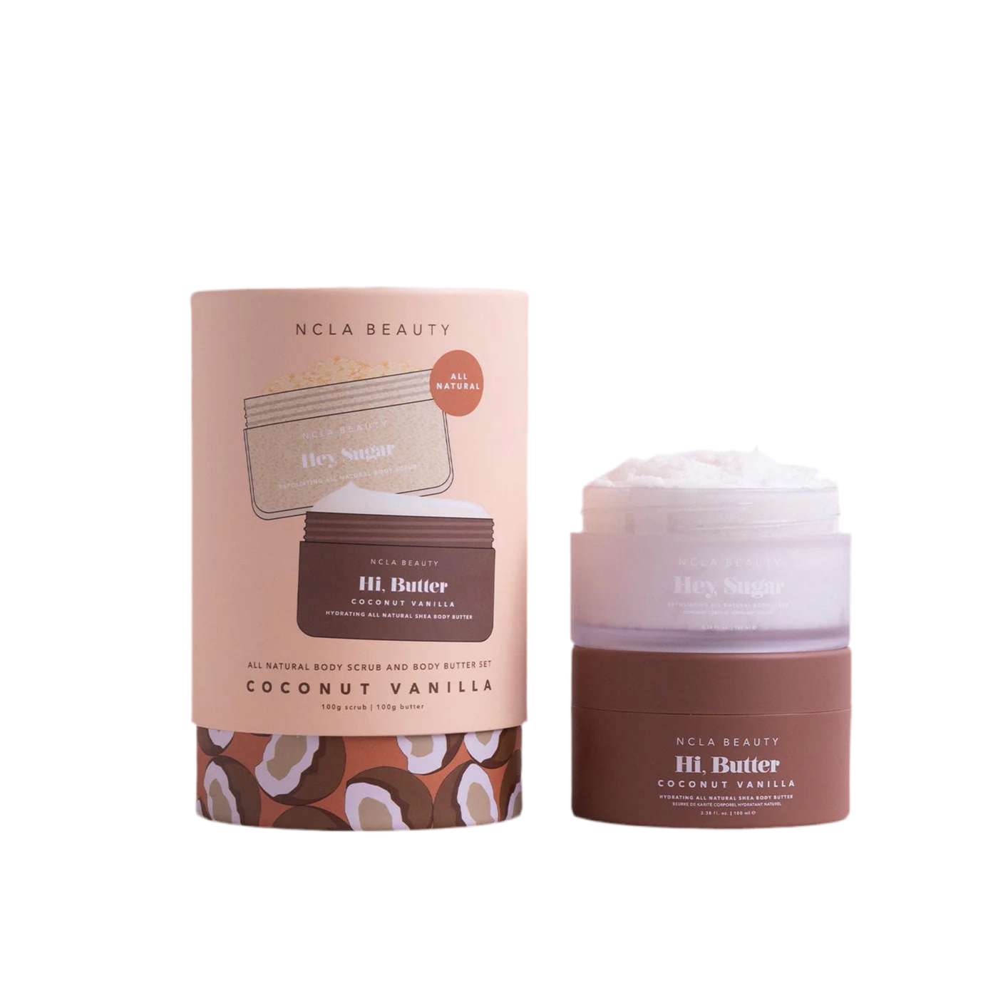 INCI: BODY SCRUB: Sucrose (White Sugar), Glycerin, Purified Water, Sodium Cocoyl Isethothionate (Hostapon SCI), Propylene Glycol, Disodium Laureth Sulfosuccinate, Stearic Acid, Salt (Sodium Chloride), Butyrospermum Parkii (Organic Shea) Butter, Theobroma Cacao Seed (Cocoa Butter), Mangifera Indica Seed (Mango) Butter, Organic Hempseed Oil, Sorbitan Caprylate, Fragrance Oil BODY BUTTER: Deionized Water (Aqua), Organic Shea Butter (Butyrospermum Parkii), Cocoa (Theobroma Cacao) Butter, Mango (Mangifera Indica) Butter, Cetearyl Alcohol, Ceteareth-20, Stearic Acid, Organic Sunflower (Heleanthus Annuus) Seed Oil, Grape (Vitis Vinifera) Seed Oil, Sweet Almond Oil (Prunus Amygdalus Dulcis), Organic Hemp (Cannabis Sativa) Seed Oil, Aloe (Aloe Barbadensis) Leaf Extract, Cucumber (Cucumis Sativus) Fruit Extract, Orange (Citrus Aurantium Dulcis) Fruit Extract (Vitamin C), Lemon (Citrus Limon) Peel Fruit Extract (Vitamin C), Benzoic Acid, Propanediol, Sorbitan Caprylate, Fragrance Oil