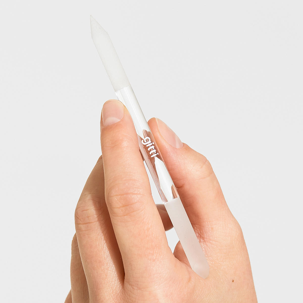 Une repousse-cuticules en verre qui permet de repousser délicatement l'excès de cuticules pour une plaque d'ongle bien soignée.