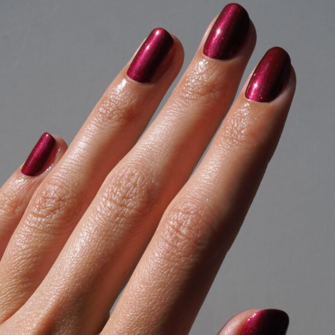 INCI: Ethyl Acetate, Butyl Acetate, Nitrocellulose, Alcohol, Adipic Acid/Neopentyl Glycol/Trimellitic Anhydride Copolymer, Acetyl Tributyl Citrate, Triethyl Citrate, Acrylates Copolymer, Stearalkonium Bentonite, Calcium Sodium Borosilicate, Calcium Aluminum Borosilicate, CI 77491, Isopropyl Alcohol, Synthetic Fluorphlogopite, Silica, CI 15850, CI 77499, CI 77891, Dipropylene Glycol Dibenzoate, Dilauryl Thiodipropionate, CI 15850, Tocopherol, Helianthus Annuus Seed Oil, Phosphoric Acid, Methicone, Tin Oxide, Aqua, Citric Acid