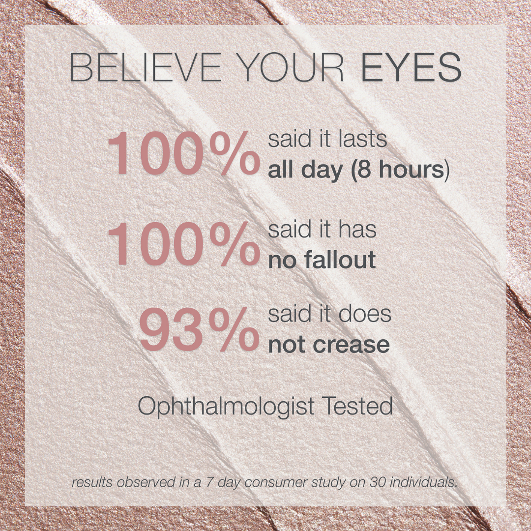 Grâce à leur formule longue-durée, les Eyelights restent en place sans migrer ni laisser de résidus poudreux pendant 8h.