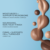Facile à estomper, cette formule fluide se superpose au maquillage pour un fini mat hydraté qui ne peluche pas et ne colle pas. Des teintes parfaitement équilibrés donnent une couleur authentiquement bronzée et saine, tandis que l'huile de carotte et un complexe prébiotique aident à hydrater, nourrir et rafraîchir la peau.